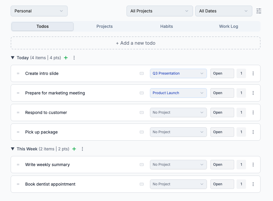 Assign points to tasks and watch your daily score grow.